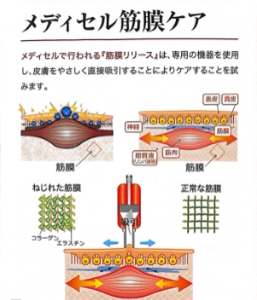 メディセルは、皮膚をやさしく吸い上げることで筋膜をほぐし、