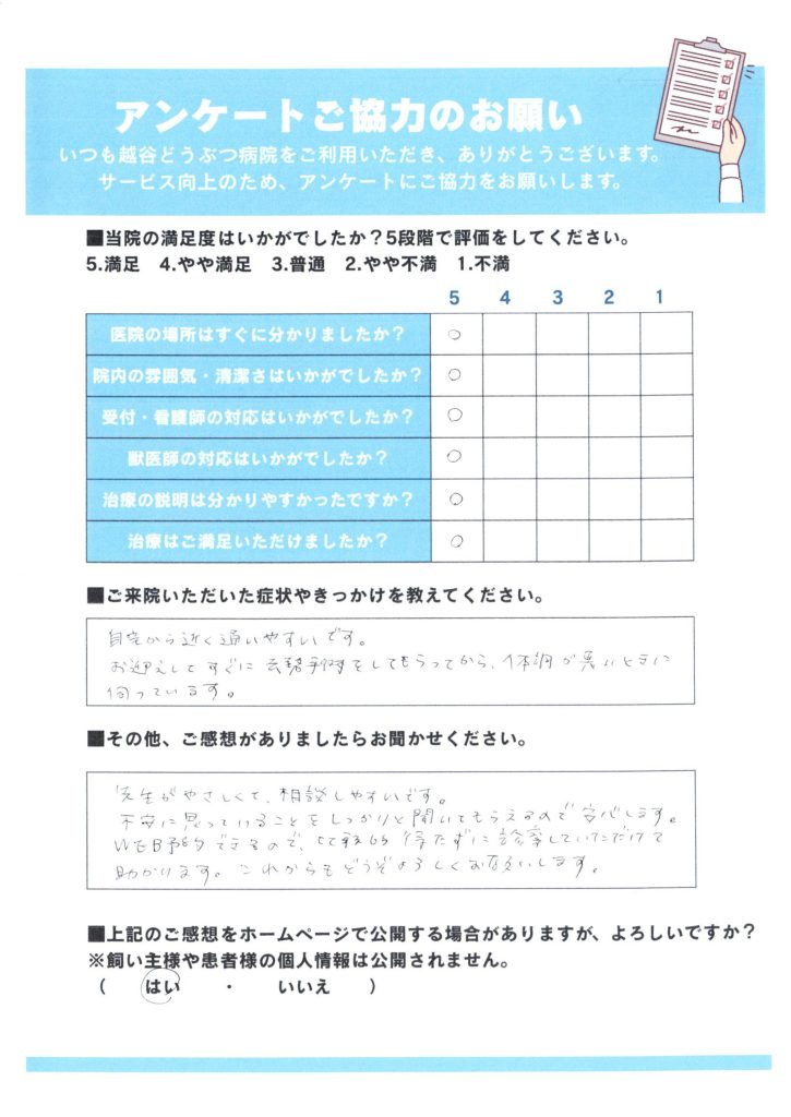 これからも飼い主様と動物たちに寄り添った診療を行ってまいります。